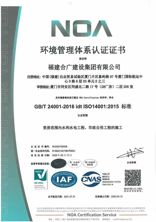 • 2020年環(huán)境管理體系認(rèn)證證書
