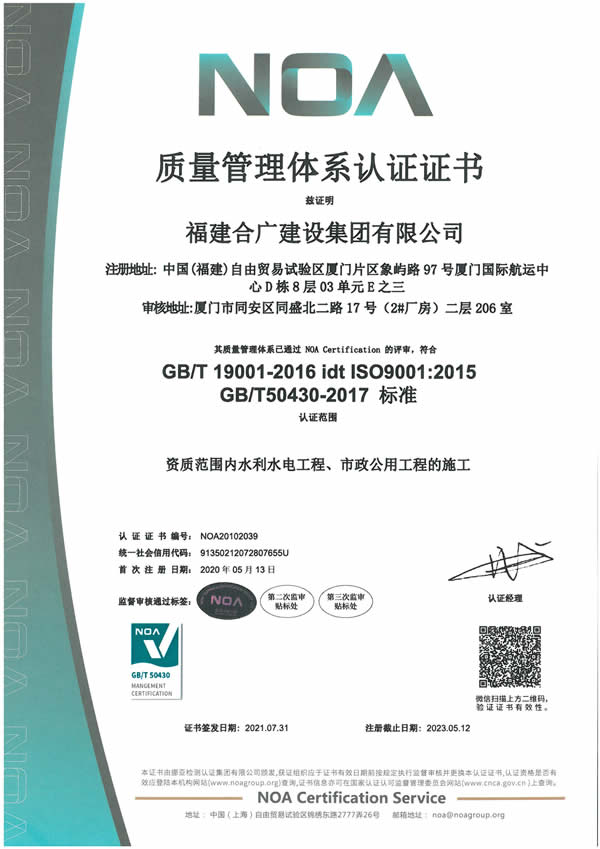 福建合廣建設(shè)集團有限公司,注冊資本5188萬元人民幣,公司位于廈門市同安區(qū)鳳山一里151-17號。本公司成立于2013年,公司具備市政公用工程、水利水電工程、房屋建筑工程、公路工程、園林綠化等多專業(yè)施工資質(zhì)。企業(yè)從業(yè)人員100多人,各類專業(yè)技術(shù)人員70多人,其中高級職稱8人,中級職稱40多人,一級建造師6人,二級建造師15多人。